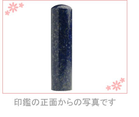 実印としては標準の大きさで、銀行印としても手ごろなので、一番ポピュラーな大きさです。ストーンは天然石、重さは宝石で換算すると150ct前後もあります。カラーは鮮やかな紺色で、一本、一本丁寧に仕上げられたラピズラズリ独特の煌めきも楽しめると思います。ストーンの表面もドーム状にキレイに磨かれており、手触りもなめらかです。 |
